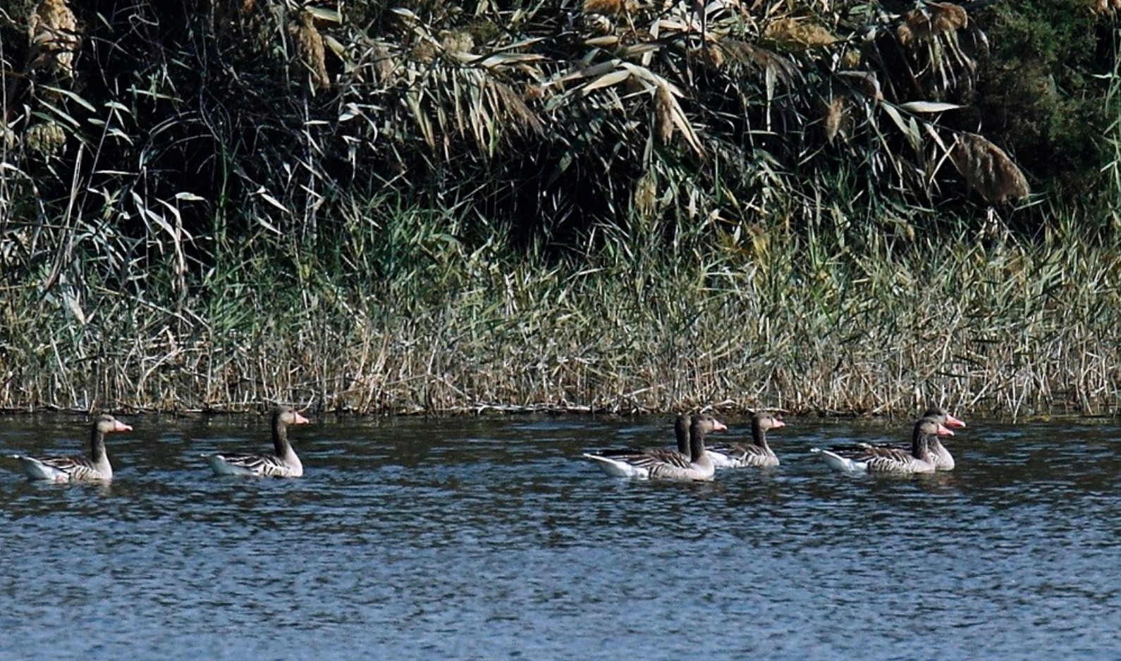 Appearance The Greylag Goose is a large, bulky goose and is considered the ancestor of most domestic geese. Size: Length about 74–91 cm; wingspan 147–180 cm; weight 2.5–4.1 kg. Plumage: Overall grey-brown with paler underparts. Bill: Stout, orange or pinkish in color. Legs: Pinkish or orange. Markings: Pale fringes on feathers give it a scaly appearance; belly often shows irregular black bars. Key Identification Features Large head and thick neck compared to other geese. White or pale grey face and underparts, blending gradually with grey-brown upperparts. Wings broad, upperwing pale with contrasting darker flight feathers. In flight, shows a strong, steady wingbeat with a slightly wedge-shaped formation when in flocks. Habitat Prefers wetlands, lakes, rivers, marshes, and agricultural fields. Breeds in northern and central Europe and Asia; winters in southern Europe, North Africa, Middle East, and parts of Asia. Often associated with farmlands during migration and winter, where it feeds on crops and grasses. Behavior Gregarious and social, especially outside the breeding season, forming large flocks. Often mixes with other goose species in wintering grounds. Feeds mainly on grasses, roots, seeds, and crops (like cereals and potatoes). Diurnal feeder but may also graze at night in areas of disturbance. Voice Loud, nasal “aang” or “gagging” honk, lower-pitched and harsher compared to domestic geese. Calls often given in chorus during flight, sounding noisy and carrying over long distances. Breeding Nests on the ground near water, hidden among reeds or grasses. Lays 4–6 creamy white eggs; incubation about 27–28 days by the female. Both parents guard the goslings, which can swim and feed themselves soon after hatching. Conservation Status Listed as Least Concern by the IUCN due to wide distribution and stable populations. However, in some regions, populations are affected by hunting pressure and habitat loss. |